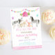 Cette adorable invitation présente des animaux de ferme avec des ballons et des confettis en feuille d'or.