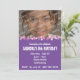 Cette fête d'anniversaire personnalisable Invitation présente des pois roses et violets, du texte personnalisable, un modèle photo pour votre photo.