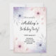 Invitations de fête d'anniversaire de fleurs pourpres de la fille.