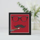 Amusant photomaton rouge et noir avec fausse moustache d'homme pour invitation d'anniversaire. Cette invitation d'anniversaire avec cigare et moustache rouge et noir est facilement personnalisable pour votre événement en ajoutant vos détails d'événement, style de police, taille et couleur de police, et texte.