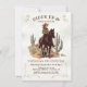 Retro Woodcut Western Desert Scene avec une jolie jeune cowgirl à cheval. Idéal pour le cowboy ou cowgirl qui veut un pays Western, mexicain, sud-ouest, ranch, équitation ou fête à thème du désert. Paysage désertique au coucher du soleil à l'arrière. Couleurs de terre cuite, jaune, vert cactus, marron et crème. Toute la formulation peut être modifiée ! Pour apporter d'autres modifications, accédez à Personnaliser ce modèle. En bas, vous verrez "Vous voulez customiser encore plus ce design ? Cliquez sur EDIT à l'aide de l'outil Design. À partir de là, vous pouvez changer certaines polices et certaines couleurs, déplacer les choses ou supprimer ce dont vous avez besoin. Une petite génération MiIdvoyage combinée avec des éléments dessinés à la main.