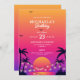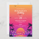 Cette vibrante invitation à la fête d'anniversaire de plage tropicale saisit l'essence d'un paradis de coucher de soleil, avec un arrière - plan à gradient époustouflant qui passe du jaune doré au rose profond et au violet. Des palmiers en silhouette, des lampes à cordes et des oiseaux qui s'envolent créent une atmosphère de plage rêvée, idéale pour une fête estivale, tropicale ou luau. L’élégant mélange de scénario et de typographie audacieuse renforce l’attrait moderne et élégant de l’invitation, ce qui en fait l’endroit idéal pour une fête au coucher du soleil, un rassemblement au bord de la piscine ou un bain d’anniversaire d’inspiration insulaire. Qu'il s'agisse d'une soirée décontractée ou d'une soirée tropicale animée, cette invitation donne le ton parfait pour une fête inoubliable.