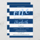 Description : Invitation à la fête d'anniversaire de l'Elégante Navy Blue White StripesCréez l'invitation parfaite de mariage avec cet modèle "Elegant Navy Blue White Stripes Birthday Party Invitation". Ce design de haute qualité est facile à customiser pour correspondre à vos couleurs, styles et thèmes mariages.