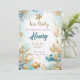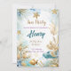 Ce design enchanteur présente des illustrations d'aquarelle de rêve d'une scène sous-marine, ornée d'accents dorés chatoyants. Parfait pour une fête magique, cette invitation capture la beauté de l'océan avec des éléments aquatiques délicats, créant une ambiance fantaisiste et élégante. Idéal pour ceux qui recherchent un invitation unique et charmant qui fera des vagues à toute fête d'anniversaire.