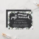 Cette invitation d'anniversaire de mariage de 20 ans élégante et décontractée présente une belle calligraphie, de belles fleurs bleues et blanches, une typographie qui indique "Juste mariés (il y a vingt ans !)", et un fond de tableau noir rustique.
