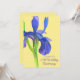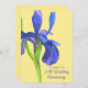 Une invitation de fête d'anniversaire de mariage de 25 ans avec un iris joli, décorée avec une fleur d'iris aquarelle peinte à la main dans des tons élégants de bleu royal et de violet sur un fond jaune doux. L'iris est une fleur représentant l'anniversaire de mariage de 25 ans. Dans le langage des fleurs, l'iris représente la foi, la vaillance et la sagesse.