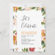 Célébrez votre jour spécial avec cette invitation de fête aux fleurs tropicales qui présente une typographie simple et élégante ainsi que des motifs floraux. Ce modèle de conception est entièrement personnalisable.