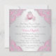 Invitation pour une fête d'anniversaire de Cendrillon avec une belle robe, des chaussures à talons hauts et un diadème avec un carrosse de princesse sur un fond tourbillonnant rose et argent. Cette invitation pour une fête d'anniversaire de princesse Cendrillon pour fille de tout âge est facilement personnalisable pour votre événement en ajoutant simplement vos détails dans le style de police et la couleur, ainsi que la formulation de votre choix. Vous pouvez déplacer les chaussures et l'oreiller, ou les supprimer si vous préférez. Il s'agit d'un design imprimé sans véritable paillettes, diamants, dentelle, etc.