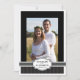 Mettez en vedette le couple célébré avec une photo de mariage originale ou une photo d'aujourd'hui sur cette charmante invitation de fête avec carte photo en noir, blanc et argent. Un texte élégant avec un fond subtil à rayures de smoking et un accent de ruban faux sur le devant qui présente une grande photo du couple spécial et constitue une belle présentation pour la famille et les invités. Chaque ligne de texte est facilement personnalisable pour répondre parfaitement à vos besoins et à vos plans de fête.