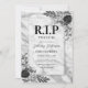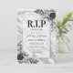 Cartes d'invitation drôles pour les 30 ans avec une pierre tombale grise argentée, des fleurs aquarelles de style funéraire rustique et un modèle de texte élégant pour la célébration d'anniversaire facile à personnaliser.