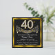 Invitation élégante pour une fête d'anniversaire de 40 ans avec des chiffres en diamant et une bannière sur fond noir et or. Cette belle invitation d'anniversaire de 40 ans noire et or est facilement personnalisable pour votre événement. Vous pouvez changer la couleur de fond. Ce design saisissant convient aussi bien à un homme qu'à une femme. Il s'agit d'un design imprimé sans vrais diamants, argent, paillettes, etc.