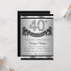 Invitation de fête d'anniversaire 40 ans noir et argent avec des chiffres en diamant et une bannière joyeux anniversaire sur un fond argent et noir. Cette belle invitation de fête d'anniversaire 40 ans en argent est facilement personnalisable pour votre événement. Vous pouvez changer la couleur de fond. Ce design saisissant convient aussi bien à un homme qu'à une femme. Il s'agit d'un design imprimé sans vrais diamants, argent, paillettes, etc.