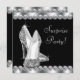 Parties scintillant élégante talons hauts chaussures et diamants femmes surprennent l'invitation de fête d'anniversaire. Cette belle invitation à la fête surprise en noir et blanc est facilement customisée pour votre événement en ajoutant les détails de votre événement, le style de police, la taille et la couleur de police et le libellé.