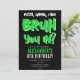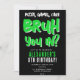 Un ado "Bruh" thème d'invitation d'anniversaire en utilisant la typographie de néon vert cool. Un modèle personnalisé enfant adolescent garçon anniversaire conception d'invitation parfait pour tout ado thème fête d'anniversaire. Customisez cette invitation d'anniversaire "Bruh" avec votre propre texte et faites-en le vôtre !