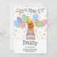 Rendez l'anniversaire de votre Griffon de Bruxelles spécial avec notre création adorable sur le thème des chiens, avec un chapeau de fête et des ballons colorés. Personnalisez cette invitation d'anniversaire amusante avec le nom et l'âge de votre chien pour une célébration qui fera battre la queue !