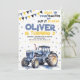 Invitation Fête d'anniversaire du Tracteur jaune bleu