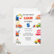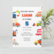 Fête d'anniversaire de transport urbain moderne Invitations avant et arrière, Camion d'incendie, Bulldozer