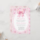 Fancy One Pink Coquette Bow Anniversaire Invitation - Plaisir dans le charme de l'élégance intemporelle avec notre Fancy One Pink Coquette Bow Anniversaire Invitation. Ce design enchanteur est doté d’un arc de coquette rose, noué avec la touche de fantaisie qui vous permettra de préparer le terrain pour la journée spéciale de votre petit. Écrit en calligraphie gracieuse, le mot "Un" danse à travers la carte en typographie romantique, tandis qu'un bouquet rêveur de fleurs vintages ajoute une douce et féministe floraison. Idéalement placé pour une célébration parfaite, cette invitation est une symphonie douce de nostalgie et de charme moderne, idéale pour les débuts chatoyants du tout premier anniversaire de votre petite fille.