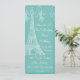Voici une invitation élégante inspirée de Paris, France, qui présente la Tour Eiffel et la Fleur de lis. Utilisez-la pour une fête d'anniversaire, une carte de sauvegarde de date, une fête d'anniversaire de mariage, et plus encore. Personnalisez avec votre propre texte, style de police et couleur de police pour s'adapter à votre occasion spéciale. Le design est présenté sur les deux côtés de l'invitation.