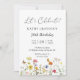 Célébrons votre anniversaire ! Des fleurs sauvages et des papillons colorés créent un design rustique et botanique pour vos invitations d'anniversaire. Des fleurs jaunes, orange, rose et bleues dansent au bas. Les polices serif et cursive ajoutent à ce design magnifiquement classique. Changez facilement l'année pour refléter l'anniversaire que vous célébrez.