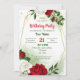 fleurs romantiques rouges et blanches et vert feuille botanique or géométrique invitation à la fête d'anniversaire Les détails de la parties scintillant sont simulés