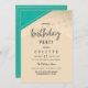 Invitation Fête d'anniversaire géométrique turquoise or flora