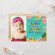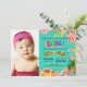 Invitation à une fête d'anniversaire Luau avec un beau fond floral tropical avec flamant rose et ananas. Cette invitation à une fête d'anniversaire Luau pour enfants est facilement personnalisable pour votre événement en ajoutant simplement votre photo et les détails de l'événement.