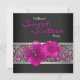 Invitation de fête d'anniversaire des seize ans avec léopard rose foncé sur fond noir.Cette invitation de fête rose vif est facilement personnalisable pour votre fête ou événement en choisissant simplement le bouton orange "Personnalisez-le !" pour commencer à ajouter les détails de votre événement, le style de police, la taille et la couleur de la police, ainsi que le libellé. Veuillez noter que tous les décorateurs de gâteaux, autocollants, cartes et modèles d'invitation que vous trouverez sur Zazzle sont des graphiques imprimés sans véritables bijoux, rubans, reliefs, gaufrages ou pièces ajoutées.