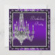 Modèle d'invitation à une fête d'anniversaire avec un lustre en cristal et damas violet élégant. Cette belle invitation de fête violette et grise argentée est facilement personnalisable pour votre événement en choisissant simplement le bouton "Personnalisez-le !" pour commencer à ajouter les détails de votre événement, le style de police, la taille et la couleur de la police, ainsi que le libellé. Veuillez noter que tous les autocollants, cartes et modèles d'invitation que vous trouverez sur Zazzle sont des graphiques imprimés sans véritables bijoux, rubans, reliefs, gaufrages ou pièces ajoutées. com