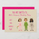 Party les invitations appropriées à la fête d'anniversaire de la soirée pyjamas ou du sleepover d'une fille comportant le graphique mignon de bande dessinée des filles portant un tout dans un costume de pyjama. Cette invitation mignonne et girly adorable est parfaite pour l'anniversaire spécial d'un enfant. La couleur des textes et d'arrière - plan est entièrement personnalisable pour adapter à vos besoins. Des informations supplémentaires peuvent être écrites sur le dos des invitations.