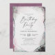 Cartes d'invitation de fête d'anniversaire à l'aquarelle éthérée abstraite moderne violette et verte. Cette invitation moderne est embellie de peintures à main avec des couleurs riches qui sont parfaites pour l'hiver. Présenté dans la palette de couleurs de mariage Burgundy dans les tons : Bleu marine foncé, Bourguogne, Rose pâle rosé, Vert fougère et Crème beige toile. Avec des détails en feuille métallisée brillante fausse et une superbe police de caractères à queue signature, la collection de mariage à l'aquarelle éthérée est sûre de rendre votre mariage mémorable et beau !