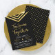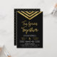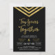 Invitation pour le 10e anniversaire moderne avec un chevron géométrique élégant et les mots "Dix ans ensemble" en or faux sur fond noir. La carte comprend un motif assorti au verso. Découvrez les articles assortis ici http://www.zazzle.com/collections/modern_faux_gold_chevron_celebration_collection-119531050277382712?rf=238364477188679314