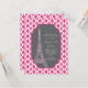 Invitation d'anniversaire moderne pour les filles, les adolescents et les jeunes femmes. motif rose et blanc vif sur la arrière - plan avec un étiquette gris foncé et une tour de muffel rose.