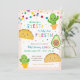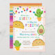 Célébrez l'anniversaire de votre chéri avec ces invitations toujours aussi mignonnes de 1ère Fête! Cette décoration adorable est composée de taco, cactus et avocats. Le texte dit : "Pas de temps pour une Siesta - C'est [le nom de votre enfant] première fête!