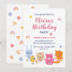 Anniversaire de enfant party Invitation avec de mignons animaux de style kawaii.