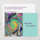 Invitations ou annonces abstraites customisées de partie de conception de remous de vortex. De l'aile gauche est une conception abstraite géniale dans un bon nombre de couleurs lumineuses et au néon, y compris des oranges, des or, des bleus, des verts, des pourpres, et des roses. La conception ressemble à un vortex en spirale sur un fond multicolore lumineux. La moitié gauche est en assortissant l'arrière - plan bleu-clair avec assortir les lettres pourpres. La rétro conception psychédélique géniale de tout-occasion est parfaite pour d'autres occasions spéciales, trop douches, parties de bachelorette, et telles. Nous avons également cette conception abstraite sur d'autres fournitures de bureau et cadeaux géniaux. Visitez juste notre magasin en ligne de Zazzle pour un bon nombre d'autres conceptions abstraites. "Vous êtes invités" est imprimés sur l'avant de ces invitations ou annonces d'anniversaire en coordonnant les lettres pourpres sur un fond bleu-clair assorti, qui peut être changé. Les couleurs customisées et coordonnées sur le dos peuvent également être changées. Présentez vos propres informations personnelles sur le dos. Changez l'arrière - plan ou la couleur des textes, style de police, ou mots si vous aimez.