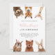 Invitation à la fête d'anniversaire d'un enfant mignonne et amusante avec des illustrations d'animaux des bois de raton laveur, renard, cerf, hibou, ours et lapin. Le texte dit "Un sauvage". Parfait pour la fête d'anniversaire d'une fille.