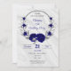 élégante romantique fleurs royales bleues et gris argenté feuille botanique couronnes luxueuses invitation à la fête d'anniversaire Les détails de la parties scintillant sont simulés