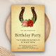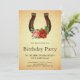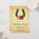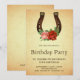 Étonnez vos invités avec cette invitation d'anniversaire élégante avec un magnifique fer à cheval vintage orné de fleurs anciennes sur un fond parchemin rustique. Ajoutez simplement les détails de votre événement sur ce modèle facile à utiliser pour en faire une invitation unique.