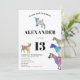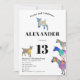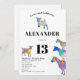 Une collection de chèvres colorées et mignonnes en rose, violet, bleu, orange, jaune et aqua. Une invitation à une fête d'anniversaire pour les 13 ans avec des animaux de ferme mignons avec des bébés chèvres et des chèvres debout sur des chèvres. Cette invitation à une fête amusante est facile à personnaliser pour créer une invitation unique adaptée aux enfants et aux adultes amateurs de chèvres. Illustrations originales de chèvres psychédéliques colorées par l'artiste Catherine Sweetman