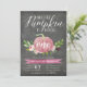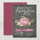 Tombent amoureux de ces invitations rustiques et élégantes pour l'anniversaire des enfants. Le design présente une citrouille aquarelle rose ornée de fleurs bordeaux et ivoire et de feuillage vert sur fond tableau noir. "Notre petite citrouille grandit" apparaît en haut dans une écriture calligraphique chic, avec l'âge de votre enfant inscrit sur la citrouille. L'exemple montré est pour un premier anniversaire. Personnalisez avec les détails de votre fête d'anniversaire ci-dessous en lettrage blanc. Les cartes sont au verso d'un bordeaux marsala uni.