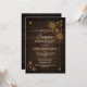Invitation de fête d'anniversaire surprise avec un cadre doré géométrique unique sur fond de bois rustique.