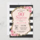 Invitation pour les 90 ans aux pivoines roses florales pour femmes. Paillettes dorées. Fleurs florales aquarelles rose poudré. Chic. Rayures noires et blanches. 13ème 15ème 16ème 18ème 20ème 21ème 30ème 40ème 50ème 60ème 70ème 80ème 90ème 100ème, tous les âges. Numérique imprimable. Pour une personnalisation supplémentaire, veuillez cliquer sur le bouton "Personnaliser" et utiliser notre outil de conception pour modifier ce modèle.