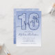 Invitation de fête d'anniversaire Sweet 16 avec écriture pailletée bleu marine. Ce design tendance est accentué de paillettes bleu marine sur un fond ombré bleu. Personnalisez ce design personnalisé avec vos propres détails.