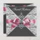 Invitation à une fête d'anniversaire Sweet 16 diamants blancs avec nœud rose et tenue rose et noir.