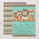 Invitation de fête d'anniversaire tribale pour enfants avec un renard tribal fantaisiste adorable, un lion et un tigre sur un fond de design aztèque amérindien bleu sarcelle et marron. Vous pouvez personnaliser cette invitation de fête d'anniversaire tribale pour votre événement en ajoutant simplement vos détails dans le style de police et la couleur de votre choix.