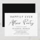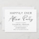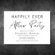 Invitation minimale et chic noir et blanc pour une fête après un mariage ou une célébration de mariage. "Fête pour toujours heureux" est écrit dans un mélange de typographie simple et d'un script moderne élégant.