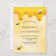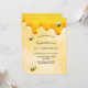 Elégante, amusante, invitation à la fête d'été de 40e anniversaire. Jaune, arrière - plan blanc avec un motif de nid d'abeille. Décoré avec du miel doux et doré et des abeilles bourdonnantes. Le nom est écrit avec un script de style moderne écrit à la main. Lettres noires. Idéal pour un thé d'été dans un jardin, jardin. Dos : motif jaune peigne blanche et une joyeuse bumble abeille.
