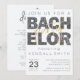 Cette carte incarne parfaitement l'esprit d'une fête de bachelorat ! La typographie amusante en noir à paillettes et les accents dorés sont tendance, amusants et donnent le ton pour un week-end rempli de plaisir. Mettez simplement à jour cette carte avec les détails de votre fête et préparez-vous à célébrer !