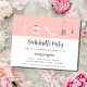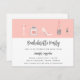Jolies filles et jolies en rose, ces invitations à la fête de la bachelorette sont une façon amusante d'invitation l'équipe de la mariée pour une nuit dans la ville pour célébrer. Invitation rose avec verre à martini, bouteille de parfum, talon haut, ameublement au champagne et rouge à lèvres - tous les ingrédients pour une bonne soirée de fille. Customisez avec les détails de la soirée. L'invitation revient à coordonner le motif de pois rose et blanc.